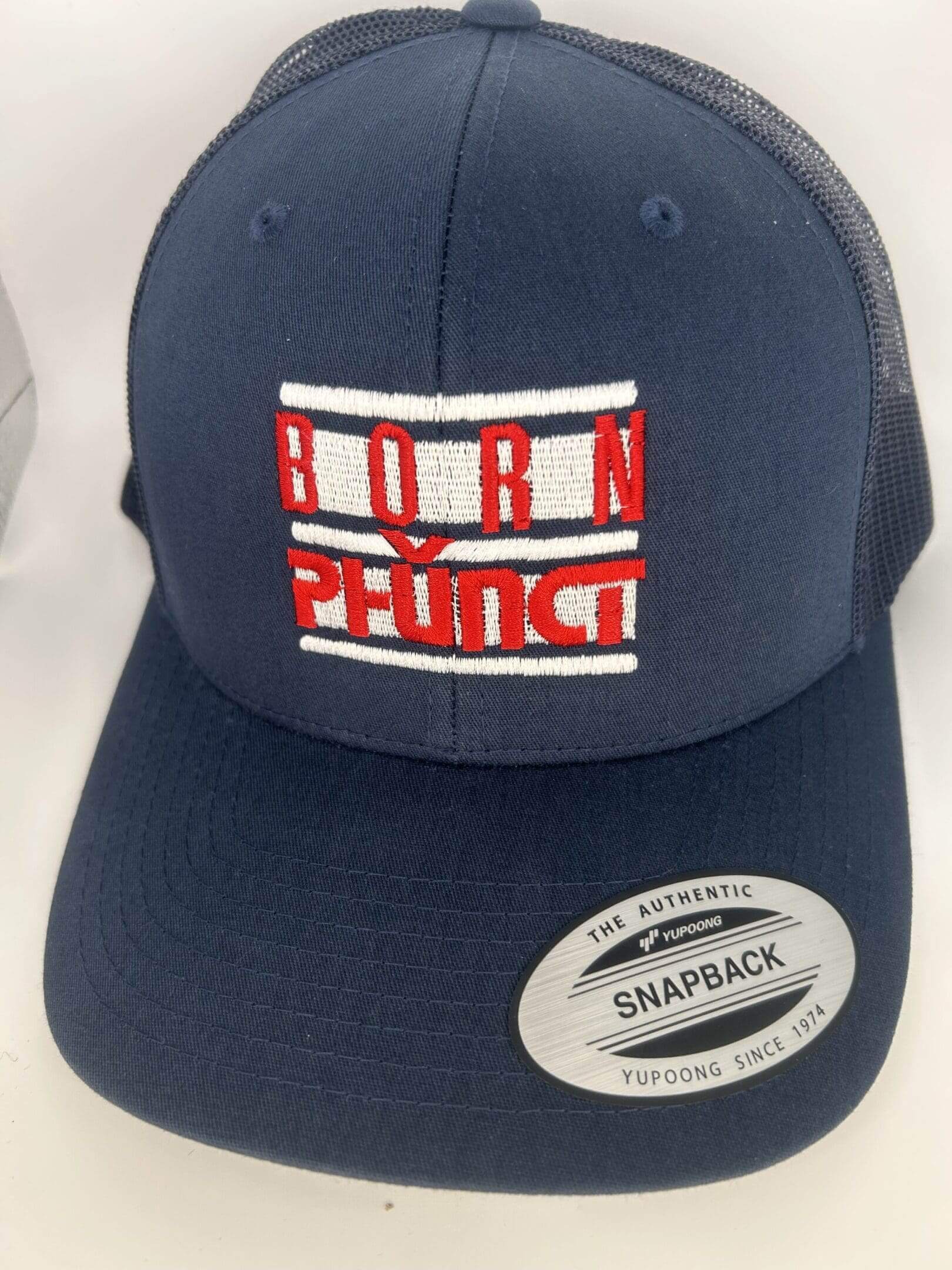 TRUCKER HAT (ONE SIZE FITS ALL)(FULLY ADJUSTABLE)BORN PHUNCT, DARK BLUE