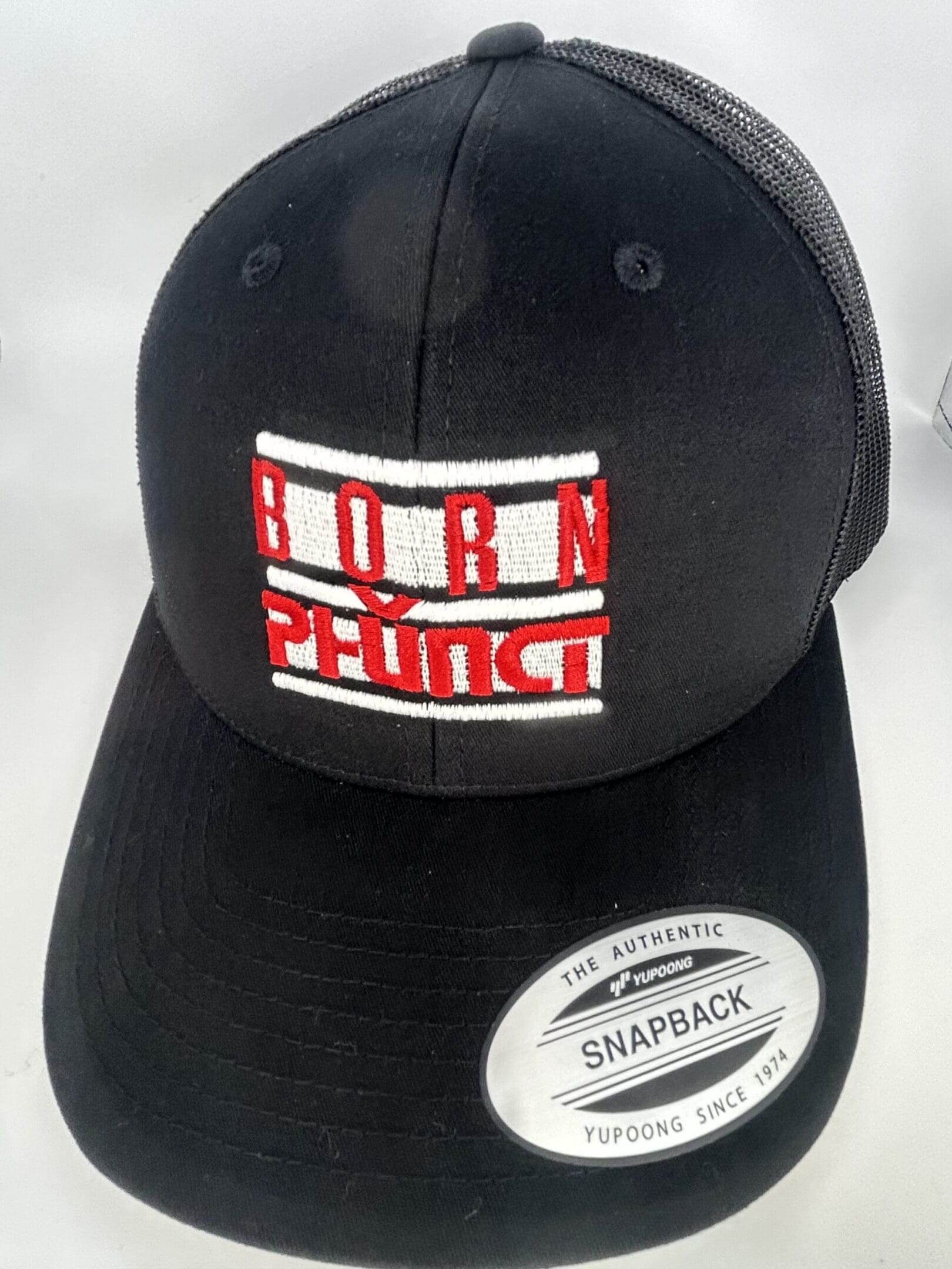 TRUCKER HAT (ONE SIZE FITS ALL)(FULLY ADJUSTABLE)BORN PHUNCT, BLACK