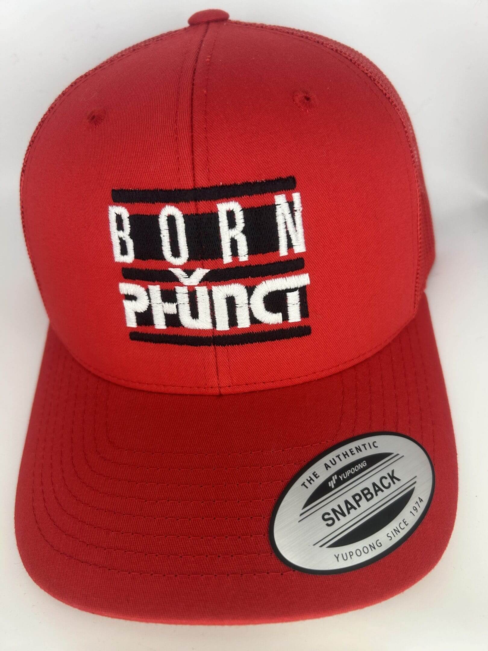 TRUCKER HAT (ONE SIZE FITS ALL)(FULLY ADJUSTABLE)BORN PHUNCT, RED